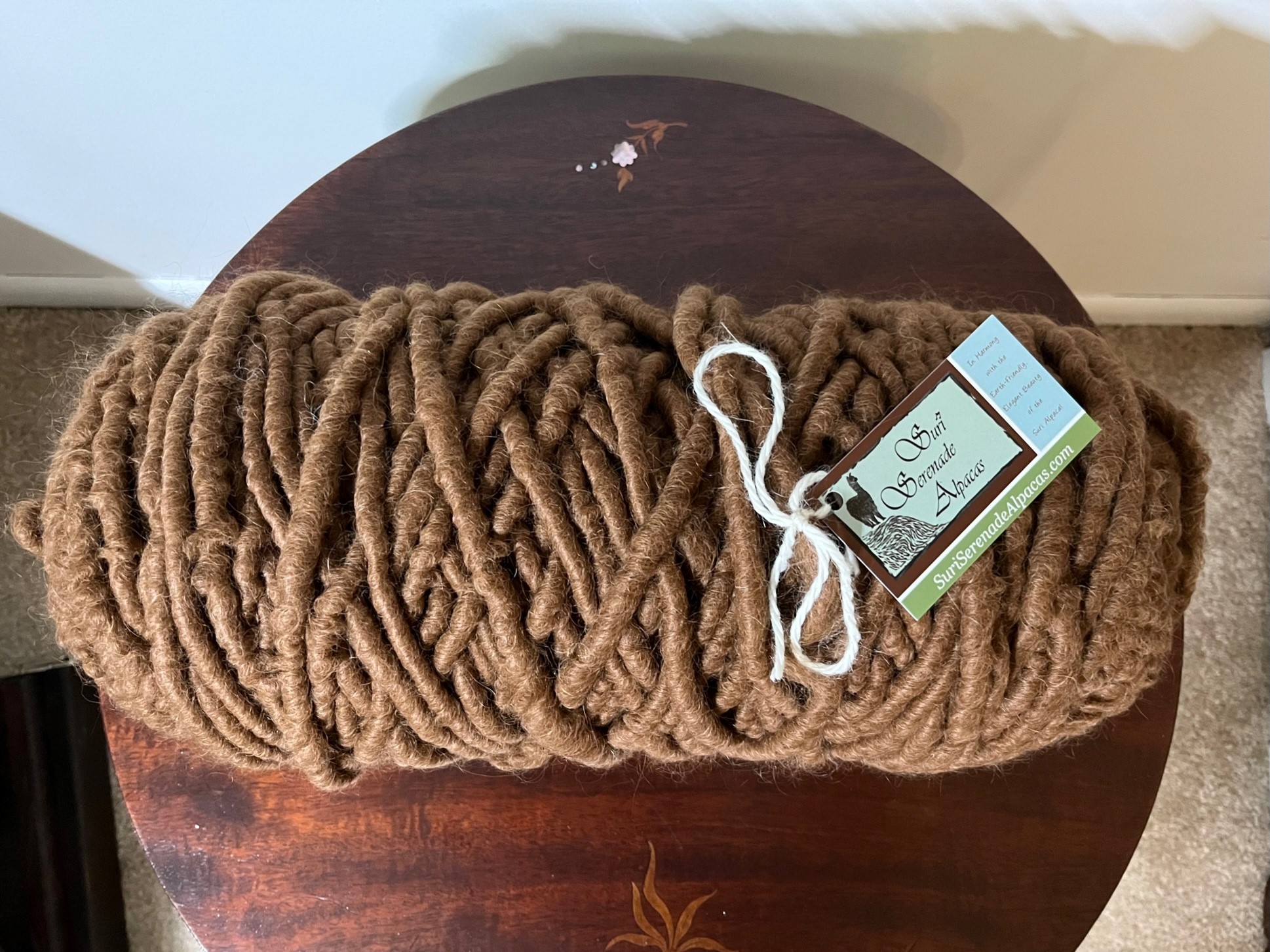 This 100% suri alpaca (over cotton core) rug core yarn is buttery soft and so beautiful! If you have ever wanted to weave or crochet with alpaca rug core yarn then this is the one for you. It would also be the ideal gift for anyone who has an alpaca fiber arts passion!