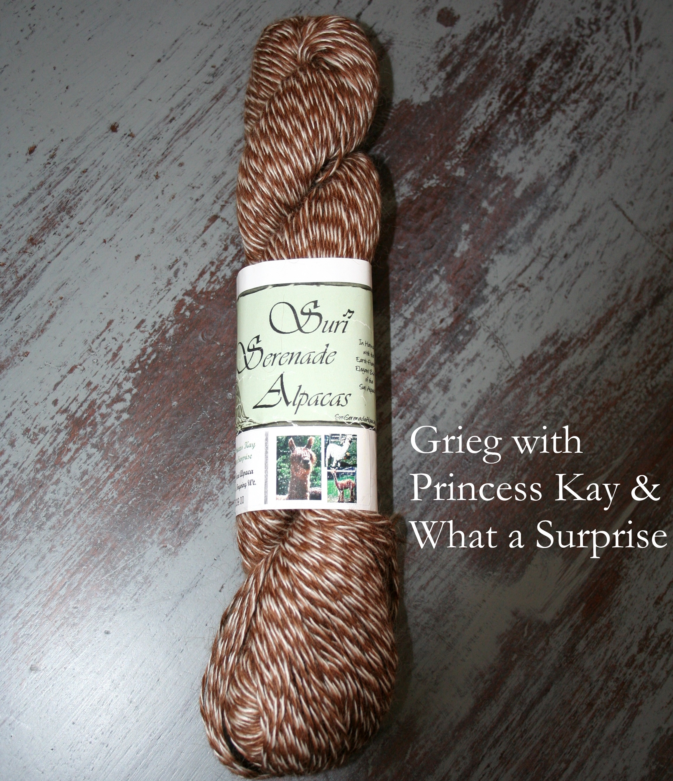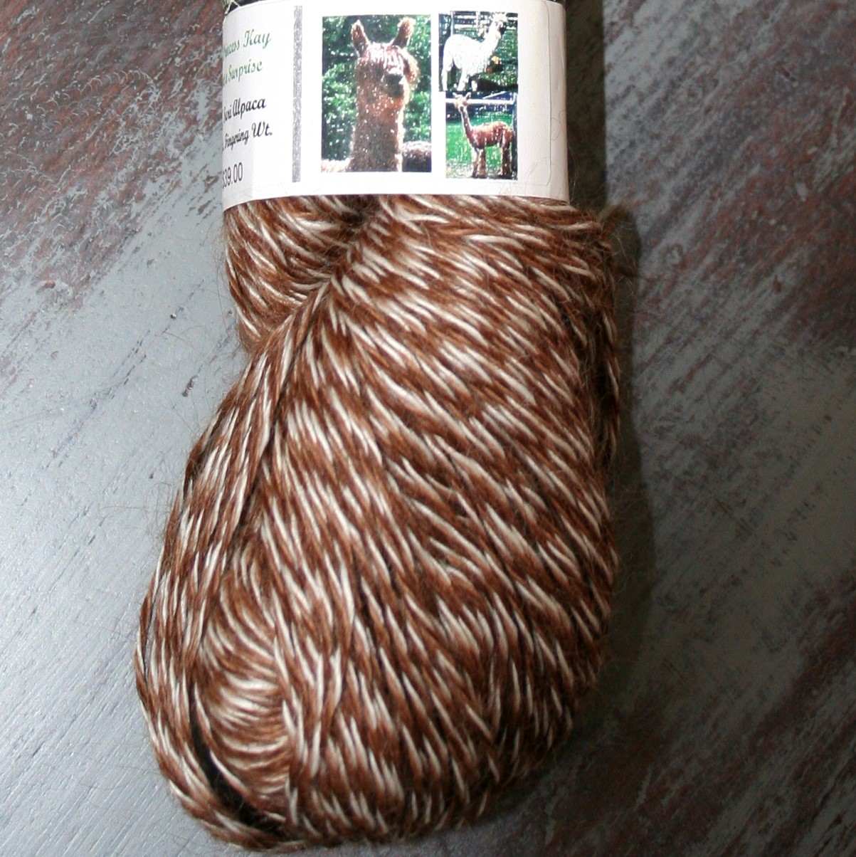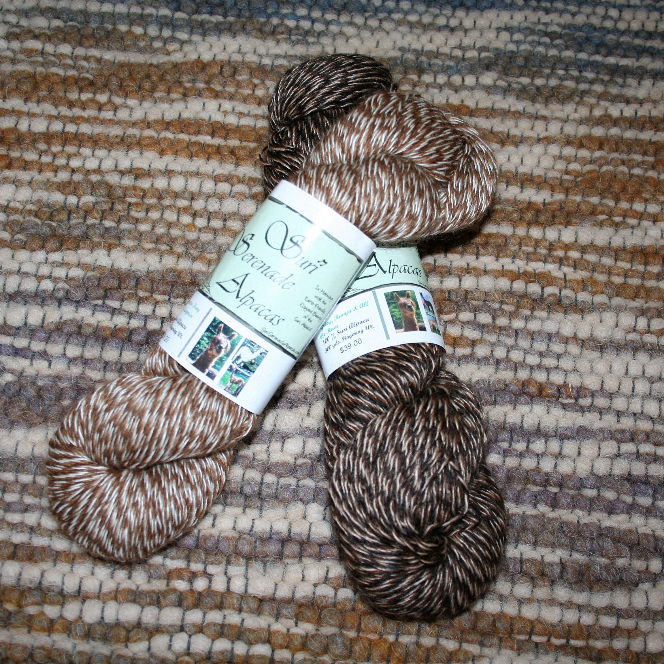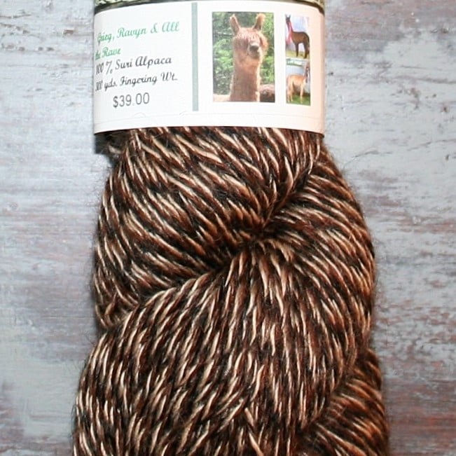 This Tri-color yarn is made with fleece from our alpacas is cleaned and spun into yarn by a local fiber processor and is 100% Suri Alpaca.