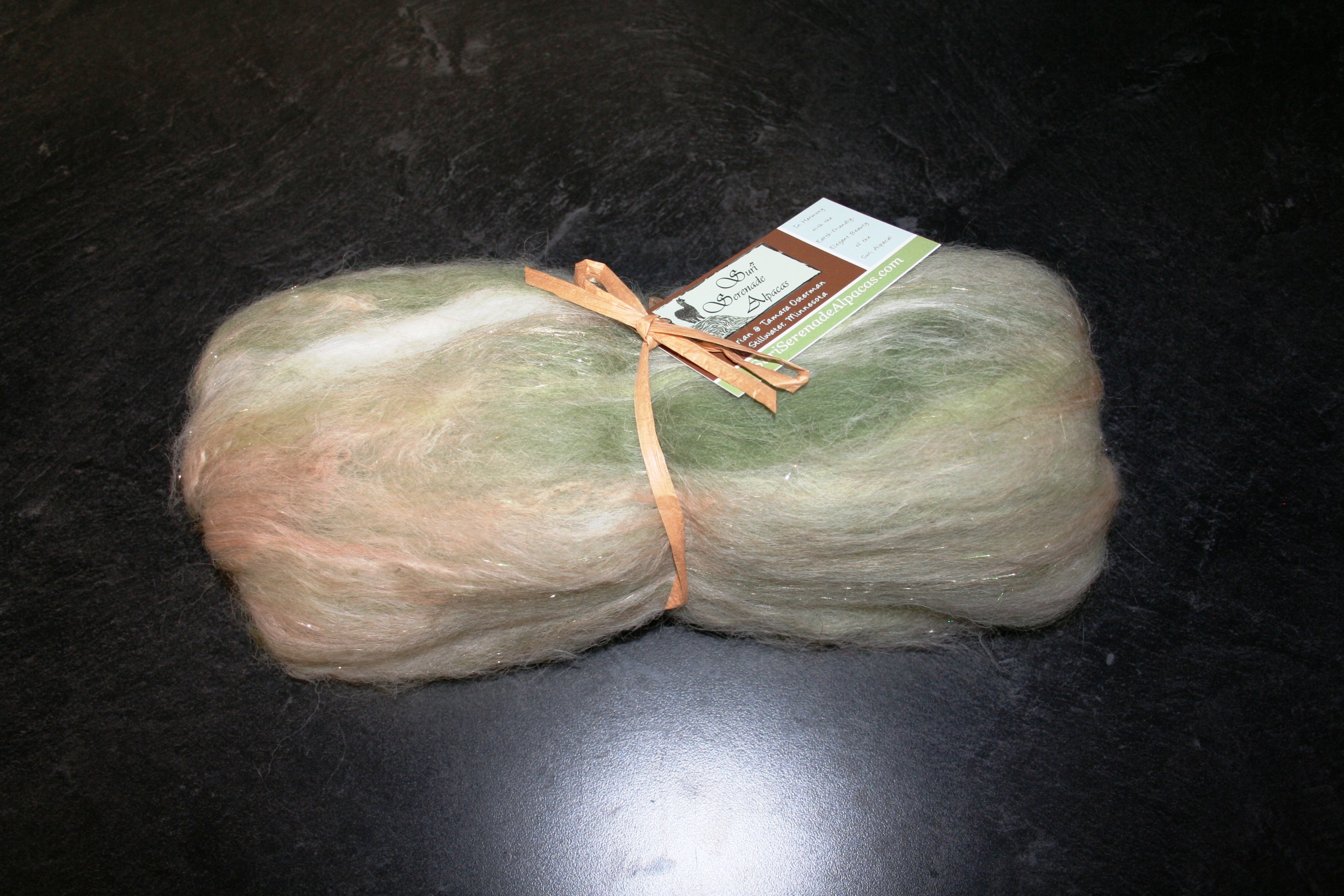 These art batts are so soft and plush! You will truly enjoy hand-spinning or dry/wet-felting these gorgeous alpaca batts. I blend approximately 70% suri & huacaya alpaca with 30% merino wool adding a little sparkle with angelina/firestar and a few suri locks for texture. Just lovely!