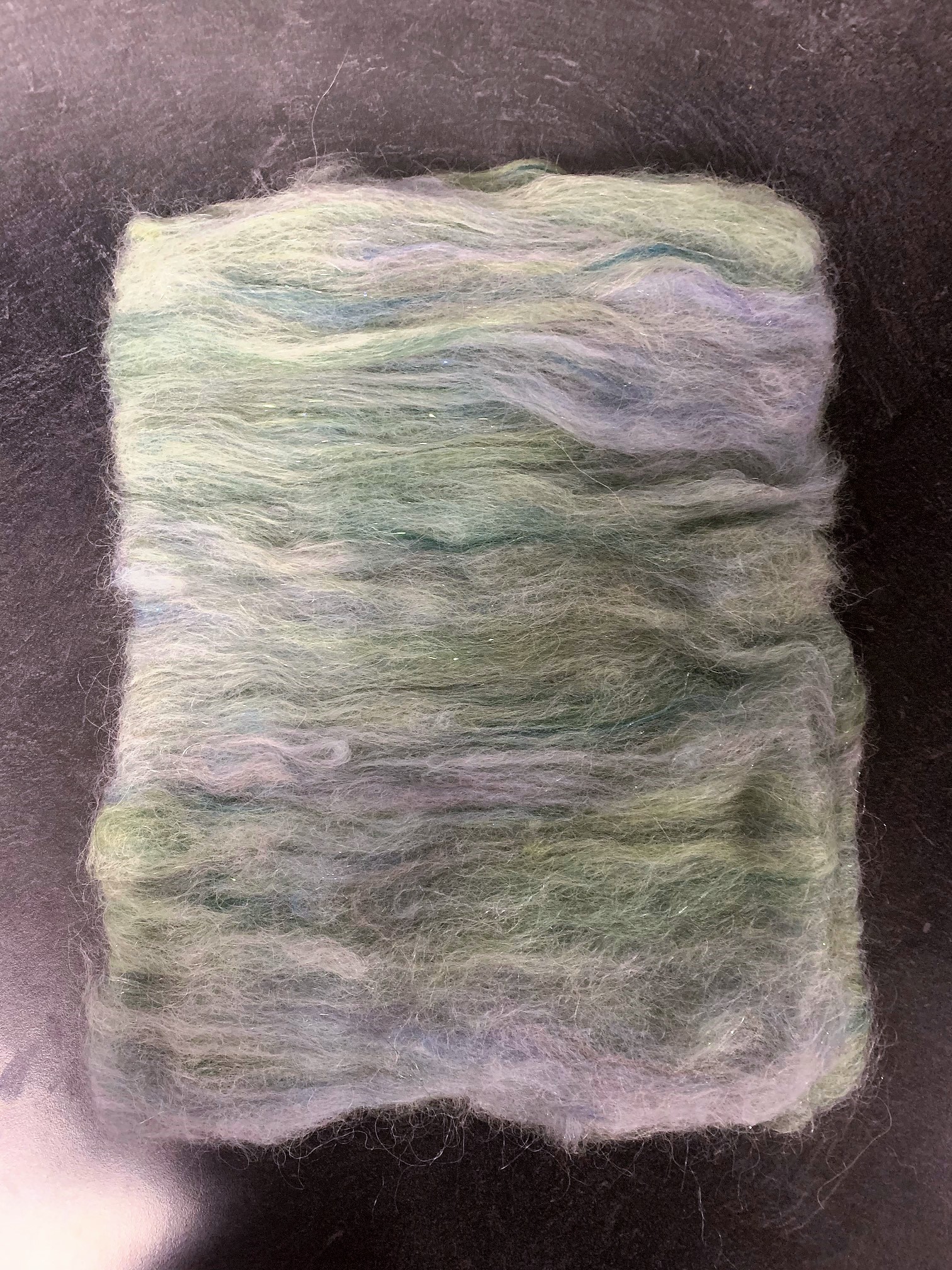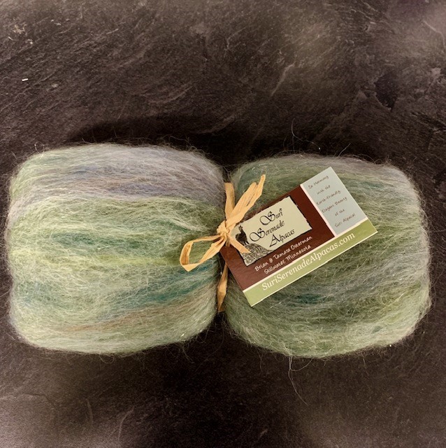 These art batts are so soft and plush! You will truly enjoy hand-spinning or dry/wet-felting these gorgeous alpaca batts. I blend approximately 70% suri & huacaya alpaca with 30% merino wool adding a little sparkle with angelina/firestar and a few suri locks for texture. Just lovely!