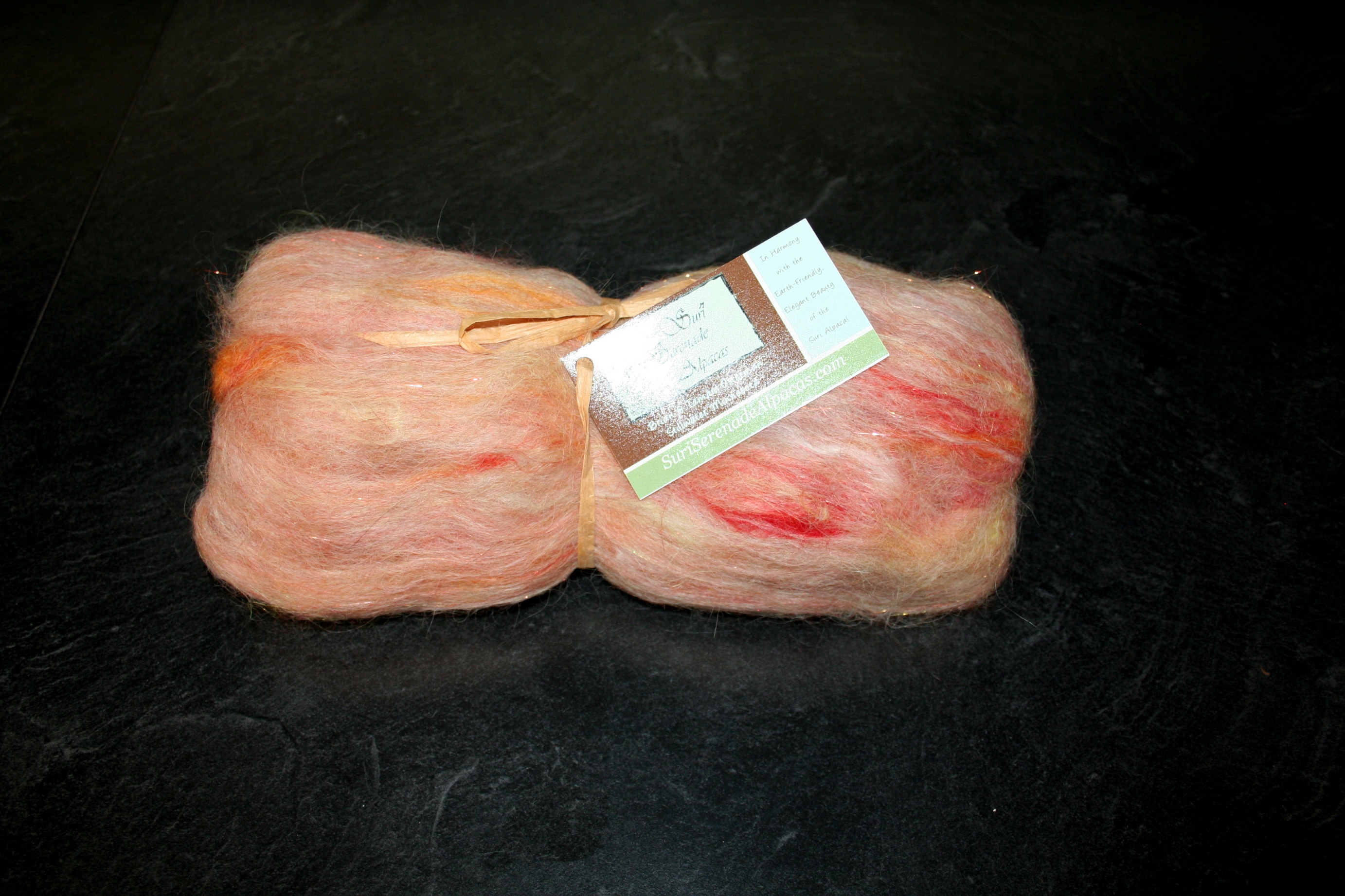 These art batts are so soft and plush! You will truly enjoy hand-spinning or dry/wet-felting these gorgeous alpaca batts. I blend approximately 70% suri & huacaya alpaca with 30% merino wool adding a little sparkle with angelina/firestar. Just lovely!